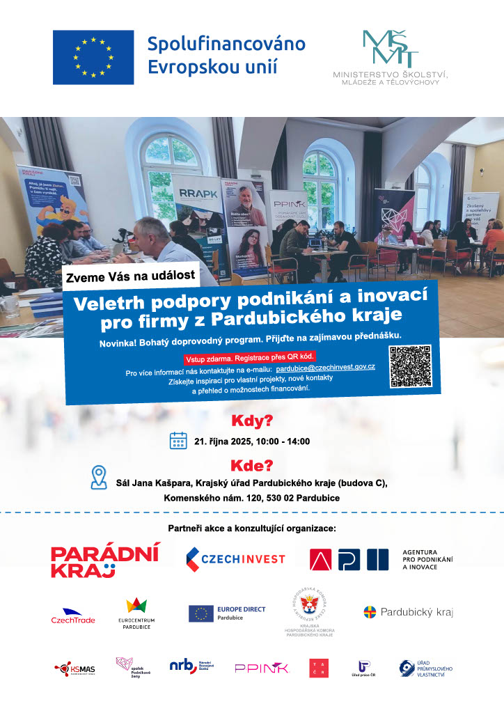 Přijďte navštívit Veletrh podpory podnikání a inovací pro firmy z Pardubického kraje, který se uskuteční již popáté.